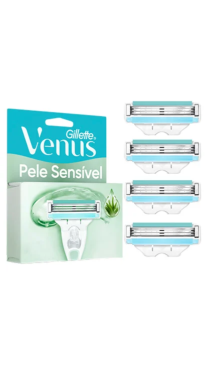 Você quer depilar suavemente em uma só passada? As cargas para aparelho de depilação Gillette Venus Pele Sensível são ideais para você. Graças ao gel ultra lubrificante com aloe vera e suas 3 lâminas antiatrito, desliza suavemente sobre a pele, proporcionando uma depilação suave e confortável. A cabeça móvel se adapta perfeitamente às curvas do corpo, garantindo um contato preciso em todas as áreas. Essas cargas funcionam com todos os cabos de Venus, exceto Venus descartável e Venus Especial para Área Íntima.